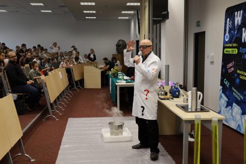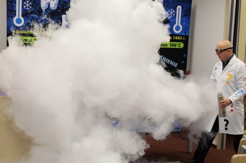 Nasz Profesor Pytalski odpowiadał za przygotowanie i przeprowadzenie pokazu naukowego pt. ”Zimne i widowiskowe - fizyka niskich temperatur”. Sądząc po burzliwych oklaskach pokaz wywarł na młodych studentach duże wrażenie.