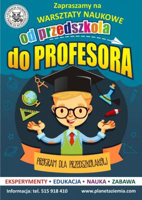 Wyrażam nadzieję, że nasz program "Od przedszkola do profesora" zaspokoi dziecięcą ciekawość, przyczyni się do poszerzenia wiedzy przyrodniczej, rozwinie aktywność poznawczą i analityczną, a zastosowana formuła warsztatów sprawi, że dzieci oprócz zdobytej wiedzy będą również uczestnikami wspaniałej naukowej zabawy. Zadaniem naszego programu nie jest wykształcenie nowych geniuszy, lecz przekazanie poprzez zabawę, pewnego elementarnego zakresu wiedzy potrzebnego do zrozumienia podstawowych zjawisk zachodzących w naszym świecie, czasami całkowicie niezrozumiałych dla starszych dzieci.