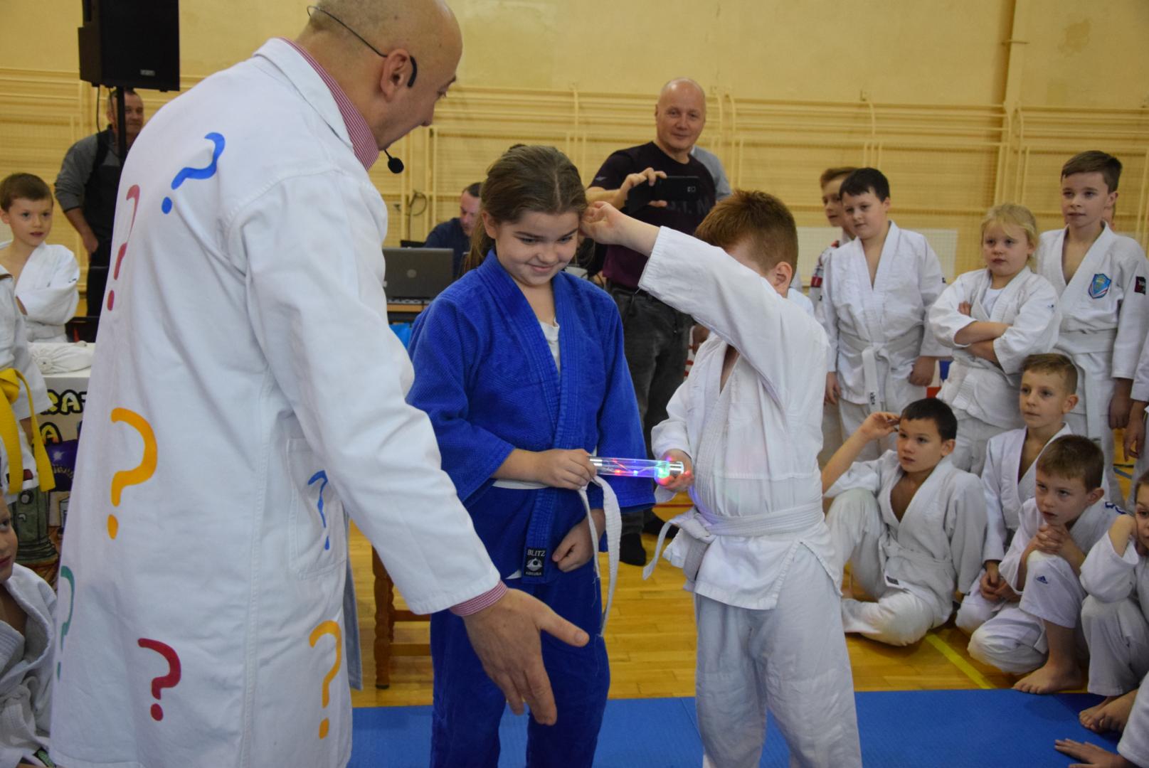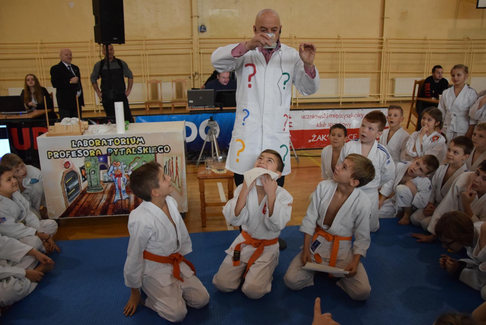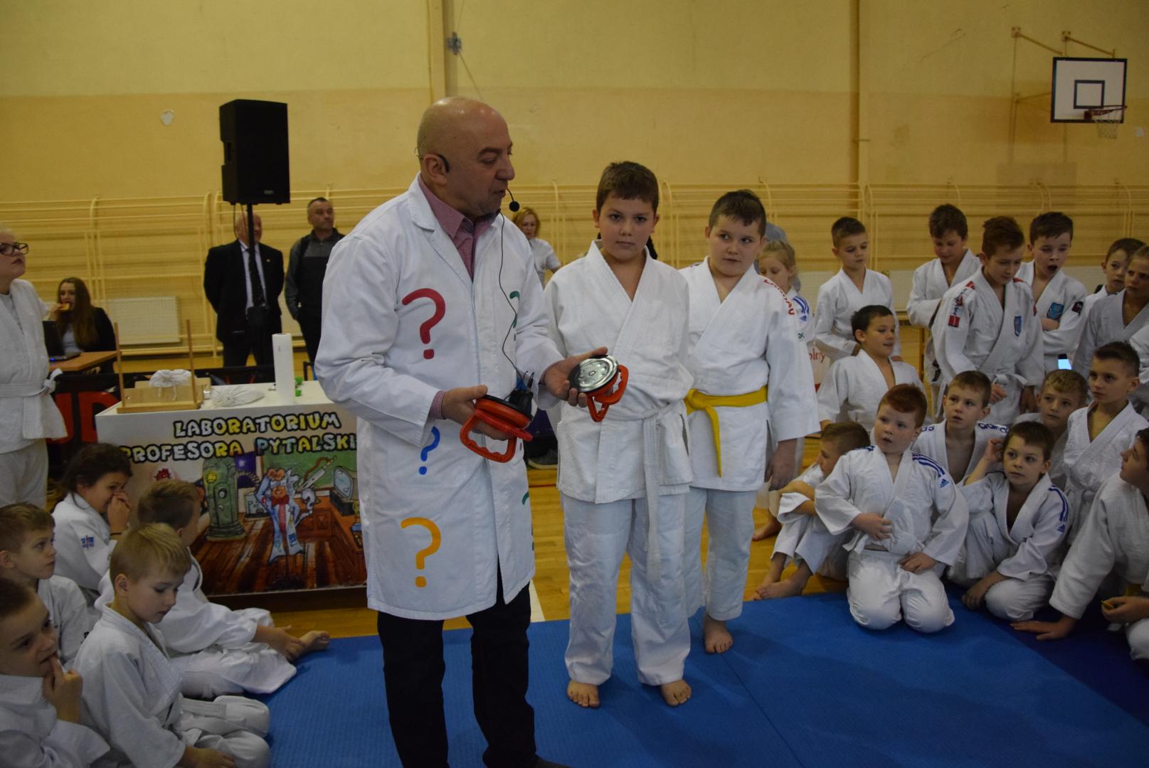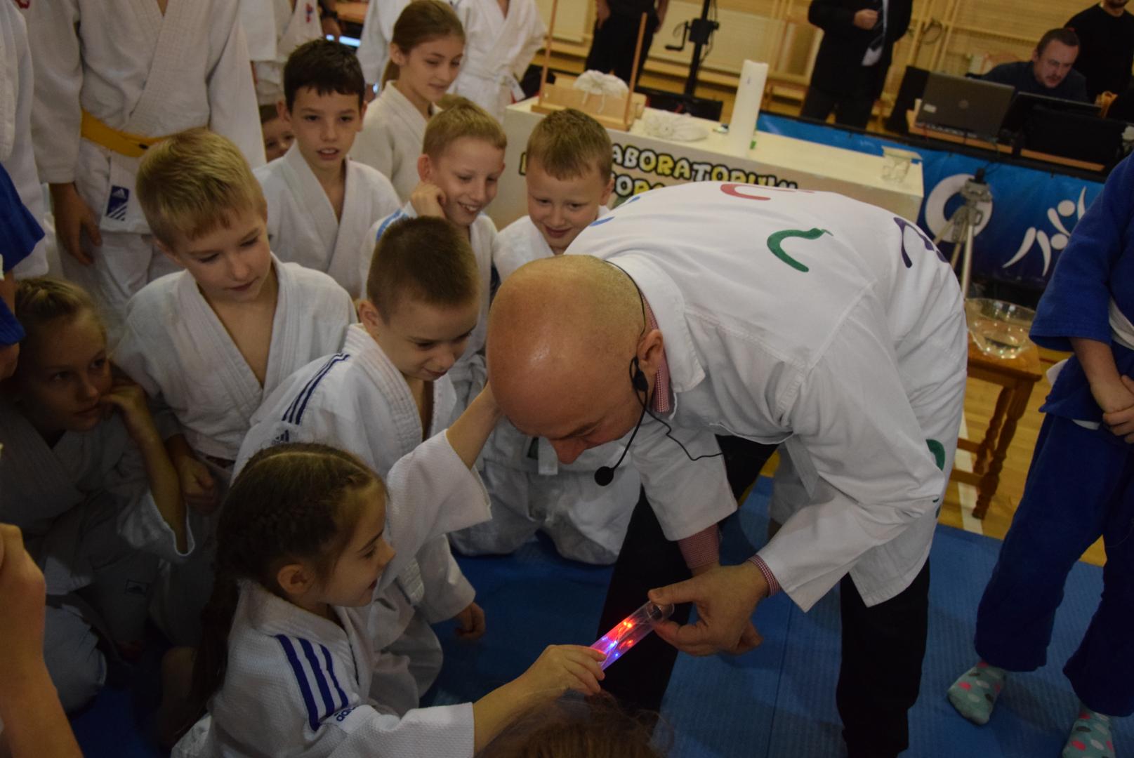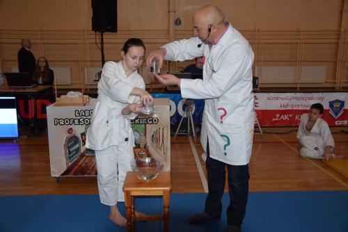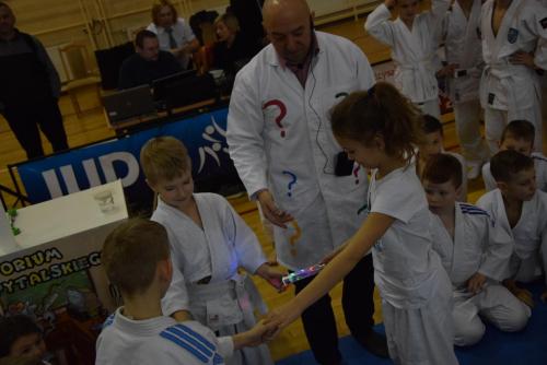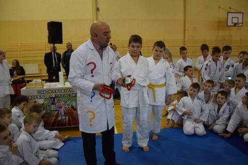Podczas oczekiwania na rozpoczęcie walk dzieci mogły obejrzeć mikołajkowy pokaz naukowy przygotowany przez naszą Fundację, a zaprezentowany przez Profesora Pytalskiego, który to jest wielkim fanem tej wspaniałej dyscypliny sportu jakim jest judo. Z naszej strony zapewniamy, że z wielką przyjemnością ponownie weźmiemy udział w tak wspaniałej imprezie.