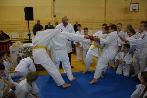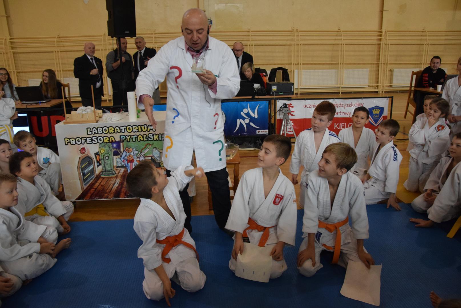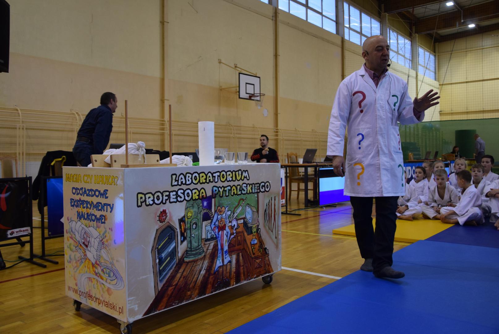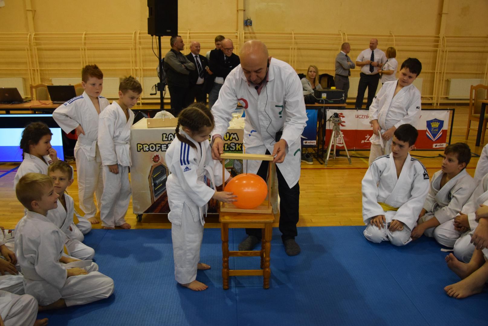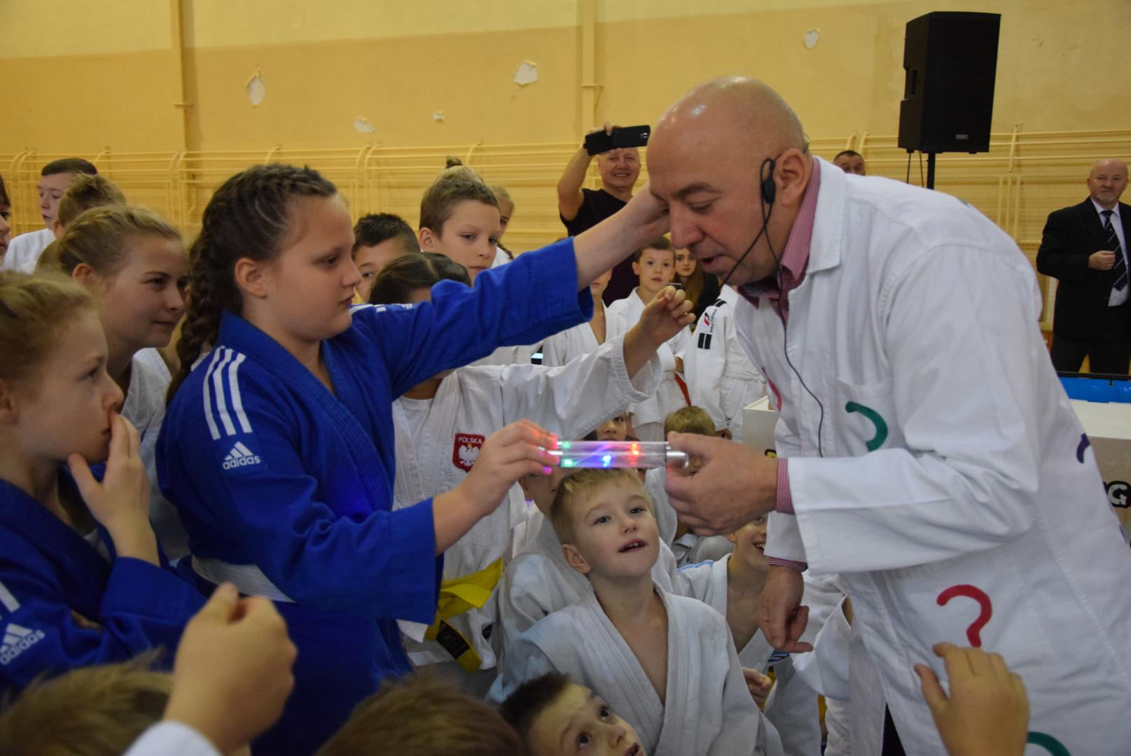 Podczas oczekiwania na rozpoczęcie walk dzieci mogły obejrzeć mikołajkowy pokaz naukowy przygotowany przez naszą Fundację, a zaprezentowany przez Profesora Pytalskiego, który to jest wielkim fanem tej wspaniałej dyscypliny sportu jakim jest judo. Z naszej strony zapewniamy, że z wielką przyjemnością ponownie weźmiemy udział w tak wspaniałej imprezie.