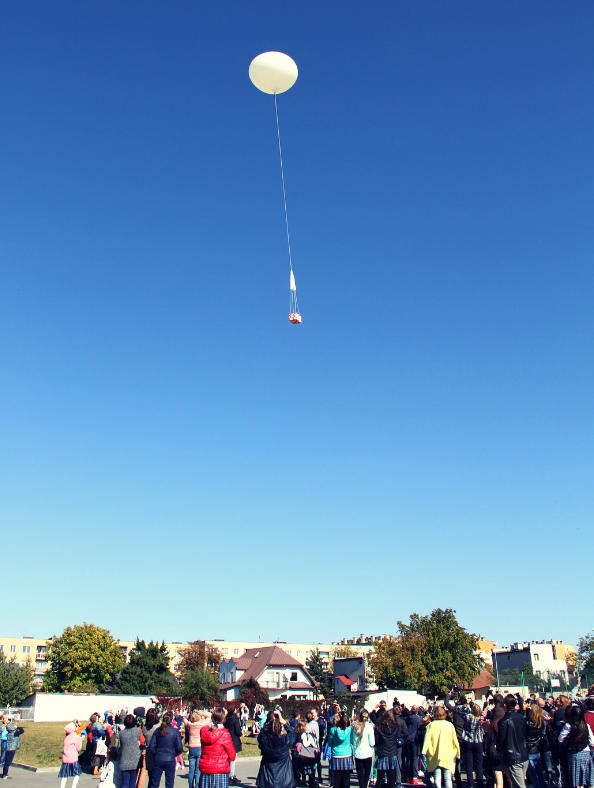 Pierwszy wspólny projekt zrealizowany przez Fundację Naukową Twórcze Myślenie i Energetyczne Centrum Nauki wraz z Zespołem Szkół Katolickich Diecezji Kieleckiej zakończony pełnym sukcesem. Projekt polegał na wypuszczeniu balonu meteorologicznego w warstwę atmosfery ziemskiej zwaną stratosferą celem przeprowadzenia eksperymentu biologicznego opracowanego przez dwóch uczniów niniejszej szkoły Huberta oraz Oskara. Ładunek jaki zabrał balon oprócz elementów związanych z eksperymentem, zawierał spadochron, lokalizator GPS/GSM oraz kamerkę do nagrywania lotu. Eksperyment zaplanowano w taki sposób aby po wypuszczeniu balon mógł osiągnąć wymaganą wysokość czyli około 30 – 35 tys. metrów, po czym po zniszczeniu balonu w skutek różnicy ciśnień, ładunek mógł opadać na zainstalowanym spadochronie. W początkowej i końcowej fazie lotu ładunek miał być monitorowany aby określić miejsce jego lądowania w celu odzyskania materiału wyniesionego w stratosferę.